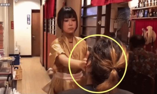 해당 식당에 방문한 손님들은 밥을 먹기 전 300엔(약 2700원)을 내고 기모노 차림의 여성 종업원에게 뺨을 맞는다.