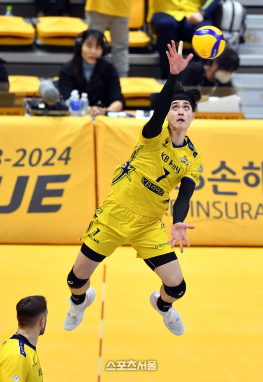 KB 리우홍민이 6일 의정부체육관에서 열린 2023 도드람 V리그 남자부 KB손해보험과 OK금융그룹과의 경기에서 특이한 자세로 서브를 하고 있다. 2023.12.06.의정부 | 강영조기자 kanjo@sportsseoul.com [기사제보 news@sportsseoul.com] Copyright ⓒ 스포츠서울&sportsseoul.com