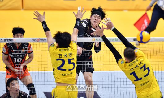 OK 송희채가 6일 의정부체육관에서 열린 2023 도드람 V리그 남자부 KB손해보험과 OK금융그룹과의 경기에서 후위공격을 성공하고 있다. 2023.12.06.의정부 | 강영조기자 kanjo@sportsseoul.com [기사제보 news@sportsseoul.com] Copyright ⓒ 스포츠서울&sportsseoul.com