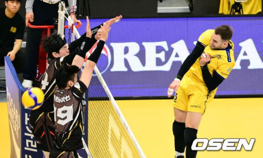 [OSEN=의정부, 조은정 기자]6일 오후 경기도 의정부시 의정부실내체육관에서 ‘도드람 2023-2024 V-리그’ 남자부 3라운드 KB손해보험과 OK금융그룹의 경기가 열렸다. 2세트 KB손해보험 비예나가 공격에 성공하고 있다. 2023.12.06 /cej@osen.co.kr