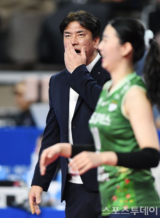 [화성(경기)=스포츠투데이 권광일 기자] 2023-2024 도드람 V-리그 여자부 IBK기업은행-GS칼텍스 경기가 6일 오후 경기도 화성시 화정종합체육관에서 열렸다. GS칼텍스 차상현 감독이 선수들을 독려하고 있다. [스포츠투데이 권광일 기자 sports@stoo.com]