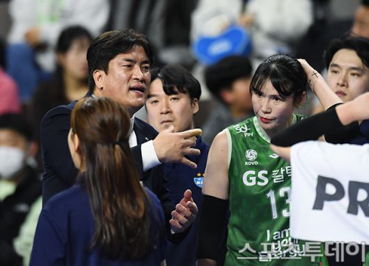 [화성(경기)=스포츠투데이 권광일 기자] 2023-2024 도드람 V-리그 여자부 IBK기업은행-GS칼텍스 경기가 6일 오후 경기도 화성시 화정종합체육관에서 열렸다. GS칼텍스 차상현 감독이 작전타임을 갖고 있다. 2023.12.06. [스포츠투데이 권광일 기자 sports@stoo.com]