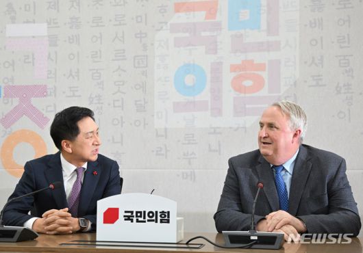 김기현-인요한 회동.[서울=뉴시스] 이영환 기자 = 김기현(왼쪽) 국민의힘 대표와 인요한 혁신위원장이 6일 오후 서울 여의도 국회에서 회동을 하고 있다. (공동취재) 2023.12.06. photo@newsis.com |