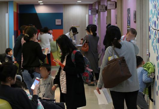 서울 한 소아과에 어린이와 보호자들이 진료를 받기 위해 대기하고 있다. [사진=뉴시스] |