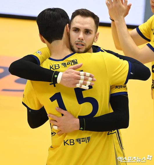 (엑스포츠뉴스 의정부, 김한준 기자) 6일 오후 경기도 의정부실내체육관에서 열린 ‘도드람 2023-2024 V-리그’ KB손해보험과 OK금융그룹의 경기, KB손해보험이 OK금융그룹에 세트스코어 3:0(25-20 25-23 25-17)으로 승리하며 12연패에서 탈출했다. 이날 경기에서 승리한 KB손해보험 비예나가 기뻐하고 있다.김한준 기자 kowel@xportsnews.com
