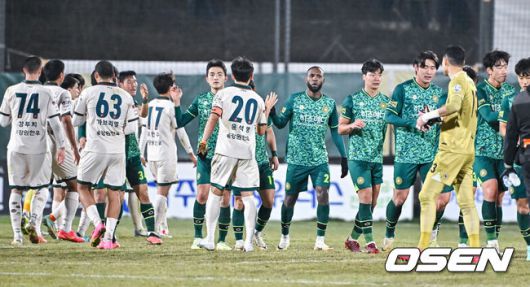 [OSEN=김포, 박준형 기자] 김포FC와 강원FC가 승강 플레이오프 1차전서 무승부로 마쳤다.