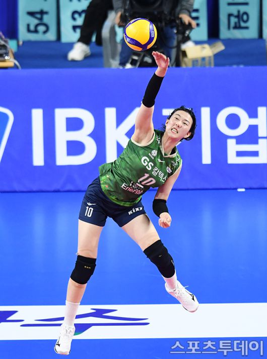 [화성(경기)=스포츠투데이 권광일 기자] 2023-2024 도드람 V-리그 여자부 IBK기업은행-GS칼텍스 경기가 6일 오후 경기도 화성시 화정종합체육관에서 열렸다. GS칼텍스 강소휘가 서브를 넣고 있다. 2023.12.06. [스포츠투데이 권광일 기자 sports@stoo.com]