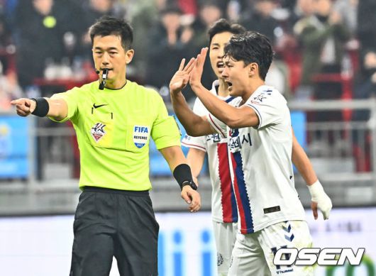 수원FC 이승우가 부산 아이파크 이승기에게 파울을 범하고 주심의 파울 선언에 아니라고 항변하고 있다. 2023.12.06 / foto0307@osen.co.kr