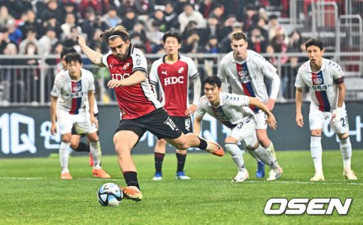 [OSEN=부산, 이석우 기자] 6일 부산아시아드주경기장에서 K리그 승강 플레이오프(PO) 1차전 부산 아이파크와 수원FC의 경기가 열렸다. 부산 아이파크 라마스가 페널티킥을 성공시키고 있다. 2023.12.06 / foto0307@osen.co.kr