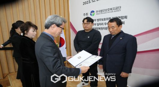 (영주=국제뉴스) 백성호 기자 = 한국법무보호복지공단 대구지부(지부장 임동문)는 2023년 12월 5일(화) 한국법무보호복지공단 주최 '2023 법무보호복지의 날 기념식'에서 대를 이어 가문이 함께 법무보호대상자 사회복귀를 위해 노력한 공로를 인정 받아 대구지부협의회 김수원 사무처장·가정복원위원회 김기동 위원이 법무보호명문가 제7호로 선정되었다고 밝혔다.