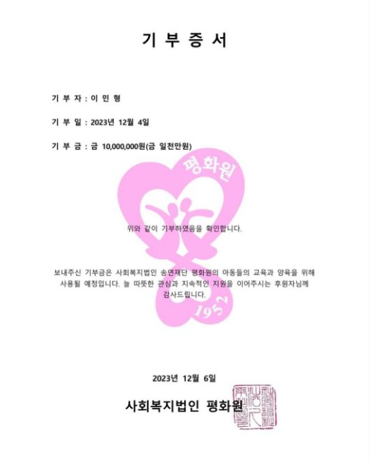 (엑스포츠뉴스 이정범 기자) T1 '구마유시' 이민형 선수가 1천만 원을 기부하며 선행 챌린지에 동참했다.