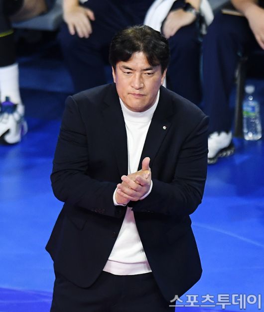 [화성(경기)=스포츠투데이 권광일 기자] 2023-2024 도드람 V-리그 여자부 IBK기업은행-GS칼텍스 경기가 6일 오후 경기도 화성시 화정종합체육관에서 열렸다. GS칼텍스 차상현 감독이 박수를 치고 있다. 2023.12.06. [스포츠투데이 권광일 기자 sports@stoo.com]