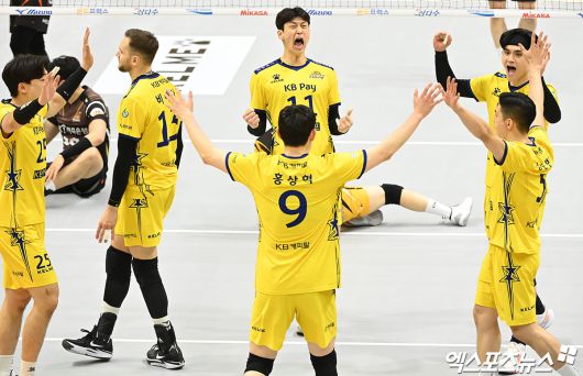 남자프로배구 KB손해보험은 6일 의정부실내체육관에서 열린 도드람 2023~2024 V-리그 3라운드 OK금융그룹과의 홈경기에서 세트스코어 3-0(25-20 25-23 25-17)으로 완승을 거뒀다.