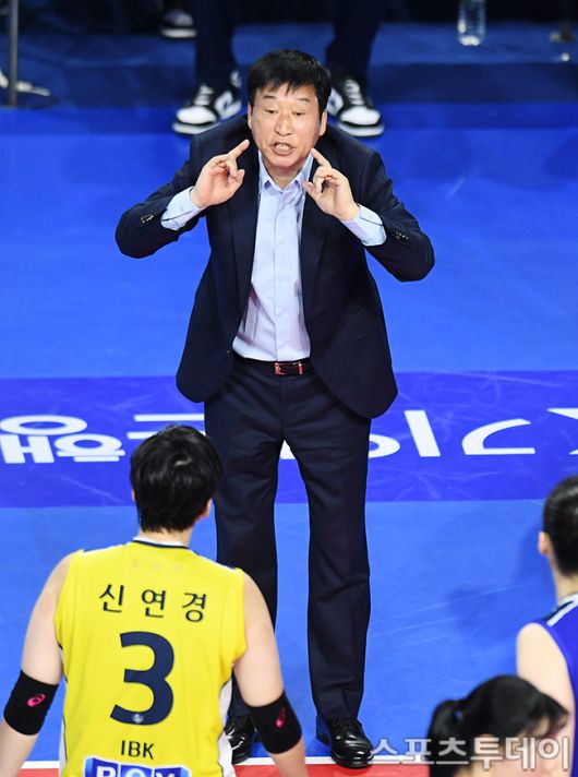 [화성(경기)=스포츠투데이 권광일 기자] 2023-2024 도드람 V-리그 여자부 IBK기업은행-GS칼텍스 경기가 6일 오후 경기도 화성시 화정종합체육관에서 열렸다. IBK기업은행 김호철 감독이 작전지시를 하고 있다. 2023.12.06. [스포츠투데이 권광일 기자 sports@stoo.com]