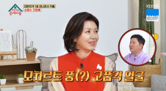 이날 아나운서 부부 1호 손범수, 진양혜가 함께 등장했다. 진양혜는 얼굴에서 모차르트가 느껴진다는 이야기에 "나는 입사하자마자 결혼을 했다. 좀 다른 걸 하자 싶어서 클래식 쪽을 시작했는데 프리로 나가고 나서도 관련된 분야를 많이 하고 있다"라고 말했다.