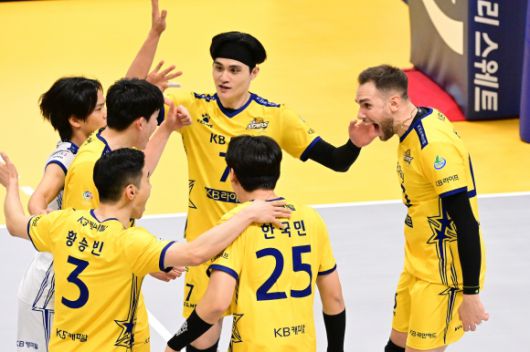 KB손보는 6일 경기도 의정부체육관에서 열린 도드람 2023~24 V리그 홈 경기에서 OK금융그룹을 세트 점수 3-0(25-20 25-23 25-17)으로 눌렀다.