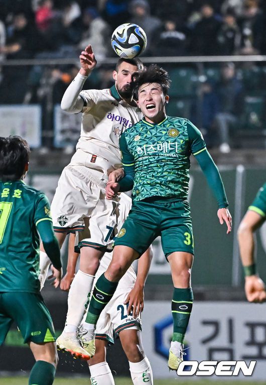후반 강원FC 강투지와 김포FC 윤민호가 공중볼을 다투고 있다. 2023.12.06 / soul1014@osen.co.kr