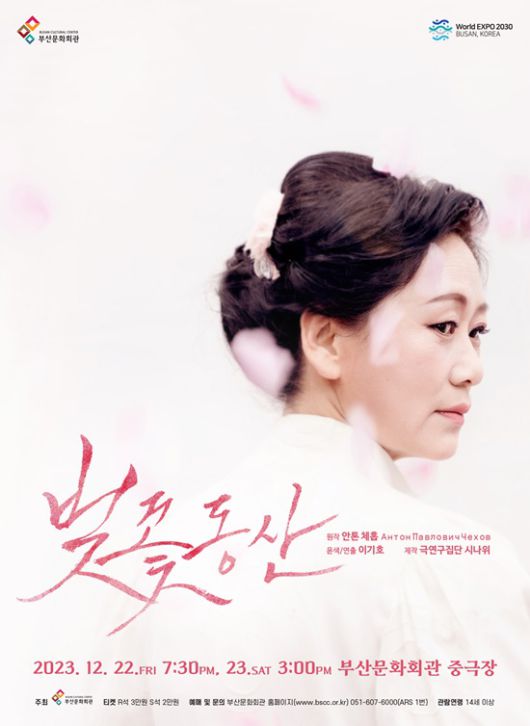 (재)부산문화회관(대표이사 이정필)은 부산을 대표하는 극연구집단 시나위에서 선보이는 명작시리즈 '벚꽃동산'을 기획공연으로 마련 오는 12월 22일, 23일 양일간 부산문화회관 중극장에 올린다.