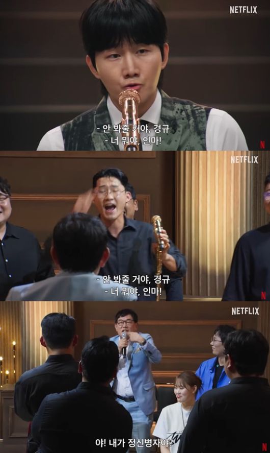 이용진은 이경규를 향해 "안 봐줄 거야, 경규"라며 도발하고, 팀 탁재훈 멤버들은 로스팅 배틀에서 일명 '4경규'로 변신해 연신 이경규의 성대모사를 뱉어낸다. 웃음으로 후배들의 개그를 받아 들이다가도 "내가 정신병자냐"라고 버럭하며 리액션을 더해 흐름을 연결한다.
