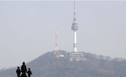 수도권 초미세먼지 농도가 나쁨 수준일 때 남산이 뿌옇게 보이고 있다. [사진=뉴시스] |