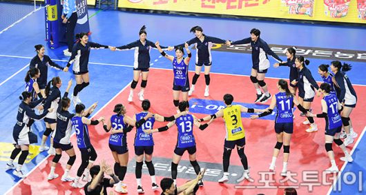 [화성(경기)=스포츠투데이 권광일 기자] 2023-2024 도드람 V-리그 여자부 IBK기업은행-GS칼텍스 경기가 6일 오후 경기도 화성시 화정종합체육관에서 열렸다.