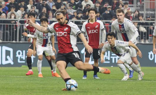 K리그1 11위로 처지며 승강 PO에 나선 수원FC는 전반 42분 장재웅이 선제골을 터뜨렸지만 이후 2차례나 문전에서 상대에게 파울을 범해 PK를 내주며 통한의 역전패를 당했다. 이 과정에서 경고누적으로 이승우가 퇴장당해 2차전에도 나서지 못하게 돼 치명상을 입었다. 양팀의 2차전은 9일 수원에서 펼쳐진다.