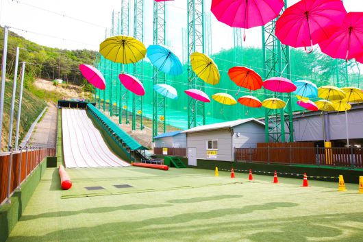 썰매장은 78m 길이의 슬로프에 6개 레인으로 13도의 아찔한 경사면을 타고 미끄러지듯 바람을 가르는 스릴을 느낄 수 있다.