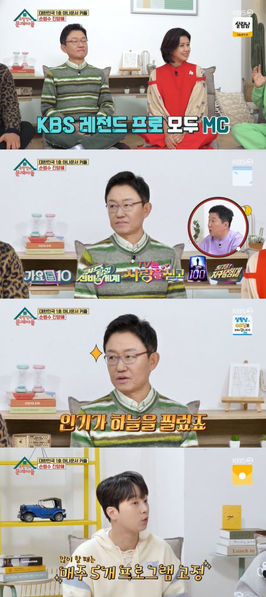 김숙은 손범수에게 당시 인기가 어땠는지 물었고, 손범수는 "인기가 하늘을 찔렀다"고 말하며 호쾌하게 웃었다. 그는 "한창 프로그램을 많이 할 때는 주간방송을 일주일에 5개 할 때도 있었다"고 고백해 이찬원을 놀라게 했다.