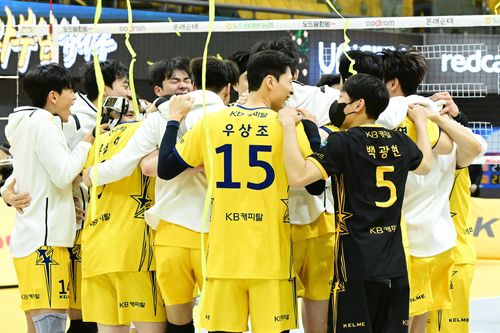 (서울=연합뉴스) 김경윤 기자 = 남자 프로배구 최하위 KB손해보험이 4위 OK금융그룹을 꺾고 지긋지긋했던 12연패 사슬을 끊어냈다.