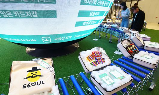 6일 서울 종로구 서울관광플라자 여행자카페에서 열린 ‘제11회 서울 상징 관광기념품 공모전’ 수상작 전시회를 찾은 시민들이 전시물을 살펴보고 있다. 12일까지 열리는 이번 전시에서는 지하철 폴사인(표지판) 모양의 연필, 간장카라멜 등 다양한 기념품을 선보인다. 남제현 선임기자 ⓒ 세상을 보는 눈, 세계일보