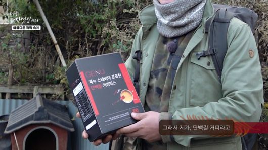 자연인은 험준한 산속, 부족한 살림살이에도 불구하고 손수 방문객 윤택에게 특식을 요리해주며 살뜰한 손님대접을 했다. 이에 감동한 방송인 윤택은 마지막 이별의 순간 단백질 커피를 선물로 건넸다.