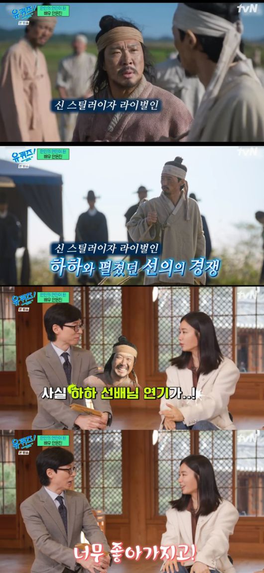 [스포츠투데이 백지연 기자] '유퀴즈' 안은진이 유재석과 하하 연기를 칭찬했다.