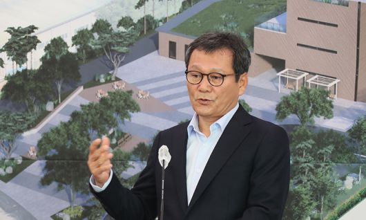 김홍규 강릉시장이 천연물 소재 전주기 표준화 허브조성 사업을 설명하고 있다. 강원도 제공 |