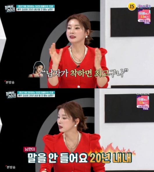 김성희는 "아버지가 너무 무서웠다"며 "그래서 저는 무섭지 않은 남자, 착한 남자가 최고인 줄 알았다"고 했다. 그러면서 "근데 말을 안 들어도 너무 안 듣는다"며 "20년 내내 제 말을 안 듣는 사람"이라고 토로했다.