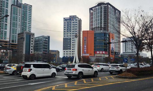 6일 오후 울산시 남구와 울주군 일대에서 발생한 정전으로 공업탑 일대 신호등이 꺼져 차들이 서행하고 있다. 연합뉴스 |