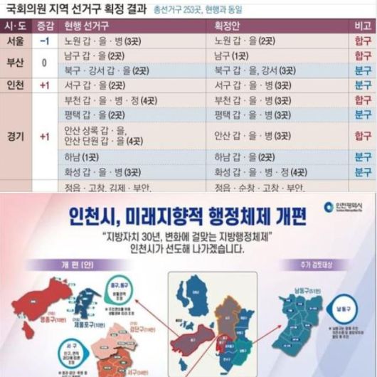 유 시장은 6일 자신의 페이스북을 통해 "중앙선관위에서 국회의원 선거구 획정안을 국회에 제출했고, 인천 서구 갑·을은 서구 갑·을·병으로 분구되어 기존 13개 선거구에서 14개 선거구로 늘어날 예정"이라며 이같이 말했다.