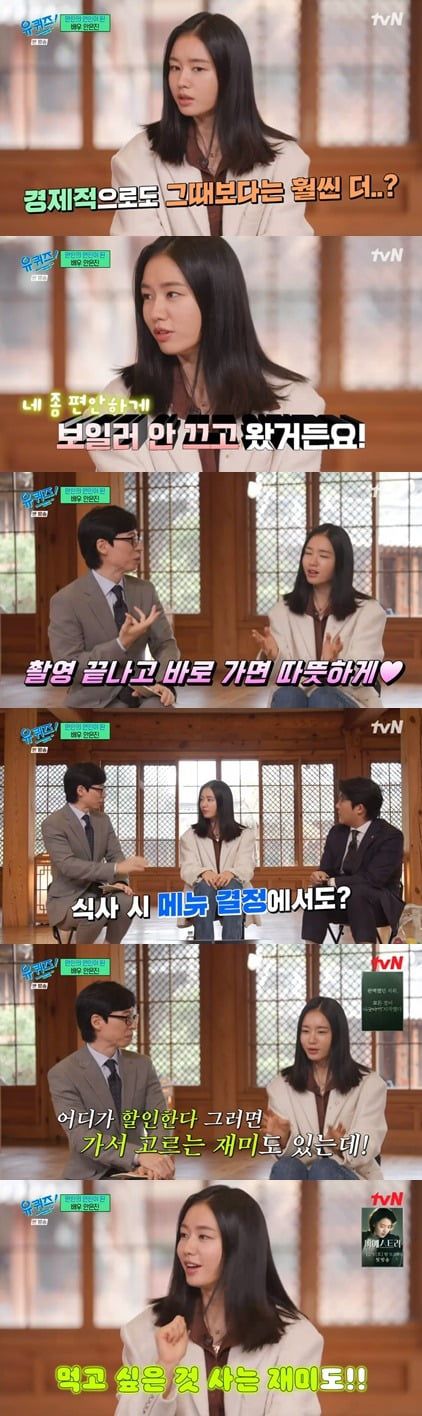 '경제적으로 달라진 점이 있는지'에 대한 질문에 안은진은 "편안하게, 보일러 지금 안 끄고 왔거든요. 겨울에 26도 이 정도는 할 수 있다"라고 솔직하게 얘기했다. 유재석은 "밥 먹을 때 고르는 거나 이런거에 시간 많이 들이냐"라고 질문하자 안은진은 "어디가서 할인하면 가서 고르는 재미가 있었는데, 이제는 먹고 싶으면 바로 산다. 어제도 딸기, 샤인머스캣 마음껏 샀다. 그릭요거트도 막 붓는다. 변화들이 있죠"라고 자랑했다. 또한 '촬영 이후에 어떻게 지내는지' 근황에 대한 질문에 안은진은 "계속 잠이 든다. TV 보다가도 자고, 몇시간 잤는지 셀 수도 없이 잔다"라고 말했다.