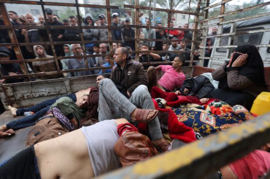 짐처럼 실려 병원으로 이스라엘군의 본격적인 지상작전으로 다친 팔레스타인 가자지구 남부 칸유니스의 주민들이 5일(현지시간) 나세르 병원으로 이송되고 있다. 세계보건기구(WHO)는 이날 350개 병상이 있는 나세르 병원에 환자 1000명과 피란민 수천명이 몰려들어 의료시설 가동 능력이 한계를 맞고 있다고 밝혔다. 로이터연합뉴스 |