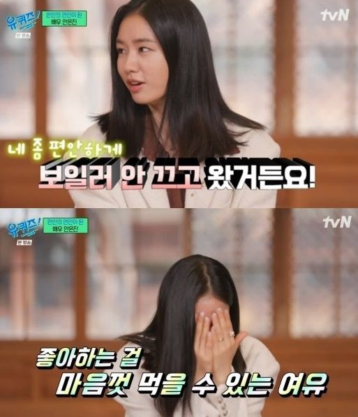 이날 유재석은 "'연인' 출연 후 수입에 변화가 있냐"고 물었고, 안은진은 "편안하게 보일러를 안 끄고 왔다. 겨울에도 26도 유지할 수 있다"고 답했다.