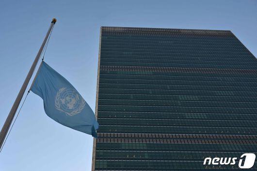 이스라엘과 팔레스타인 무장정파 하마스의 분쟁 중 가자지구에서 사망한 동료들을 추모하며 13일(현지시간) 미국 뉴욕의 유엔 본부에 유엔 깃발이 반기로 게양되어있다. ⓒ AFP=뉴스1 ⓒ News1 정지윤 기자 |