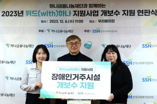[이데일리 김태형 기자] 한국사회복지협의회(회장 김성이)와 하나금융나눔재단(이사장 김한조)이 6일 인천시 부평구에 위치한 우리들의집(원장 노혜원)에서 ‘2023 위드(with)하나 지원사업 현판식’을 개최했다.