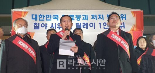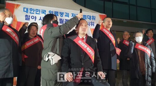 [라포르시안] '대한민국 의료붕괴 저지를 위한 범의료계 대책 특별위원회'(위원장 이필수, 이하 범대위)가 6일 오후 10시부터 용산 대통령실 인근 전쟁기념관 앞과 대한의사협회 회관 앞 천막농성장에서 의대정원 증원 저지를 위한 철야 시위 및 1인 릴레이 시위에 들어갔다. 시위는 내일(7일) 오전 7까지 이어갈 예정이다.
