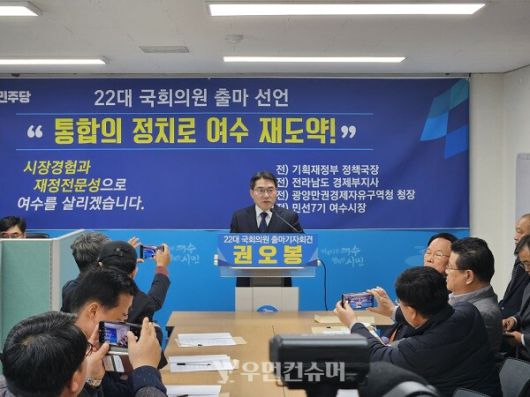 권오봉 전 여수시장이 6일 여수시청에서 제22대 국회의원 출마를 공식 선언하고 기자회견을 열었다.
