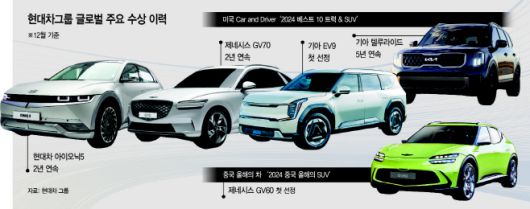 현대차그룹 관계자는 "뛰어난 제품 경쟁력을 바탕으로 글로벌 자동차 시장에서 의미 있는 수상 소식을 이어가고 있다"며 "앞으로도 현대차그룹은 세계 최고 수준의 제품을 고객에게 제공하기 위해 지속적으로 노력할 것"이라고 말했다.