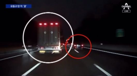 지난 5일 오후 9시경 경기 의왕 과천봉담고속화도로에서 1차선을 달리던 화물트럭이 깜빡이를 켠 채 2차선으로 넘어온다. 거의 동시에 3차선을 달리던 유동규 전 성남도시개발공사 본부장이 탄 승용차도 깜빡이를 켜 2차선에 진입한다. 채널A 캡처 |