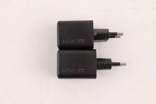 UP451, UP452는 3세대 반도체 소재인 GaN(질화 갈륨, Gallium Nitride)을 사용해 전력 변환성을 높이고, 전력 손실을 최소화한 충전기다. 또 GaN 소재를 적용했을 때의 장점 중 하나는 크기인데, UP451과 UP452는 45W급의 다른 충전기와 비교했을 때에도 작은 크기와 무게를 보여준다.