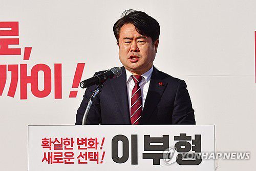 (포항=연합뉴스) 손대성 기자 = 이부형(51) 전 대통령 비서실 행정관이 7일 경북 포항 흥해실내체육관 광장에서 기자회견을 열고 포항 북구 선거구 총선 출마를 선언했다.