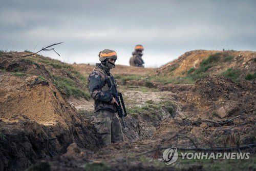프랑스서 전투기술 훈련 중인 우크라 병사들(프랑스 미상 AP=연합뉴스) 우크라이나 병사들이 지난 달 7일(현지시간) 프랑스 모처에서 전투기술 훈련을 받는 모습이 공개됐다.