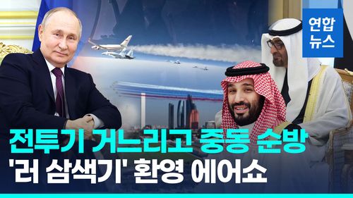(서울=연합뉴스) 블라디미르 푸틴 러시아 대통령이 6일(현지시간) 전투기 호위를 받으며 아랍에미리트(UAE)와 사우디아라비아를 연달아 방문했습니다.