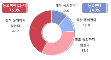 50인 미만 사업장의 안전보건관리체계 구축이 어렵지 않다는 주장에 대해서는 76.0%가 동의하지 않았다.